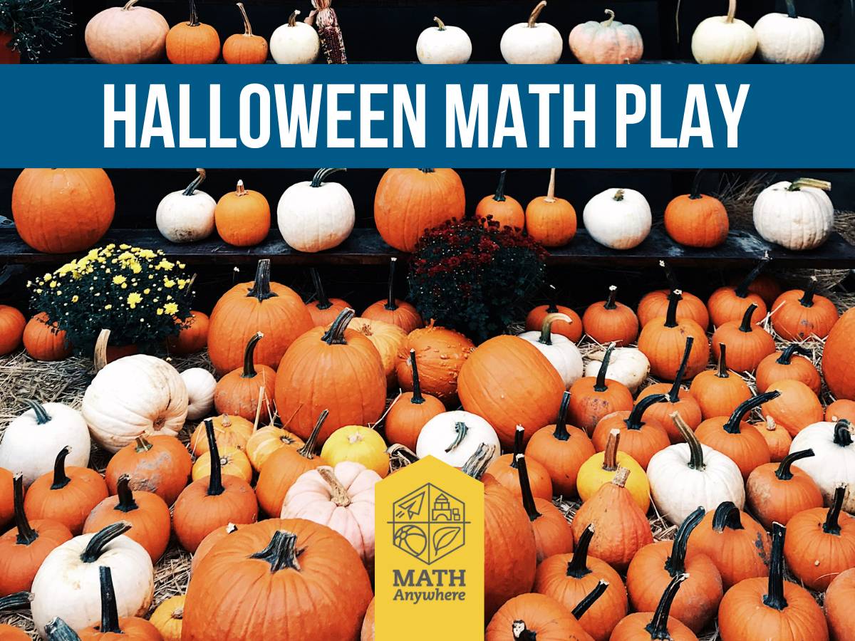 Of course, math play opportunities abound at this time of year, just like they do at anytime–not just on Halloween itself. Pumpkins are another great opportunity to engage in some fun math conversations, especially since they are piled up in front of grocery stores all month long. You could play any of our math games with pumpkins.